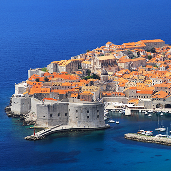 アドリア海の深いブルーと旧市街のオレンジの屋根が印象的なドブロブニク。ジブリ映画「紅の豚」や「魔女の宅急便」の舞台としても知られている。
