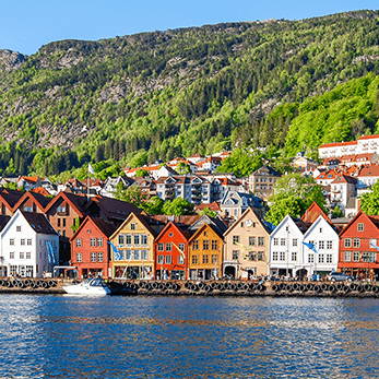 ノルウェー南西部の海岸沿いにある都市。最長最深のソグネフィヨルドに囲まれており、フィヨルド観光の拠点となる街です。