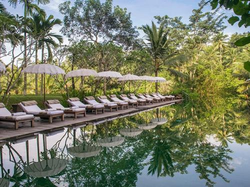「王家の谷」とよばれるウブドの大自然に囲まれたプタヌ渓谷と静寂に包まれた、全25棟のラグジュアリーなヴィラリゾートです。伝統的な茅葺き屋根の建物と背景の熱帯雨林の大自然、その現実離れした景色は絶景です。そしてオーストラリア人オーナーによる、ゲストへの快適で素晴らしいバカンスを過ごせるようにというホスピタリティあふれるサービスを提供しています。リゾートにはスイミングプールとスパ、フィットネスジムが完備で、専用車でのウブド内の無料送迎サービスが利用できます。ウブドの町まで車で15分程度で、お出かけの際にも便利な立地です。カスケードレストランは見た目も美しい料理が外部のゲストからの評判も良く、ルンバスパも開放的な屋外ジャグジーや景色の良いテラスが女性に大変人気があります。ヴィラは全棟プライベートプール付きで、テラスヴィラ以上のカテゴリーからはプタヌ渓谷の壮大な眺めを楽しめます。クラシックなヨーロッパ風とバリの伝統的なインテリアが融合した客室デザインとなっています。ツインベッド仕様の部屋も用意されており、スパ施設が充実しているので女性同士の旅にもおすすめです。リゾートのどこからもウブドの大自然の景色を眺めることができる、隠れ家的というよりは、明るく開放的でフランクなラグジュアリーといった雰囲気のあるリゾートです。