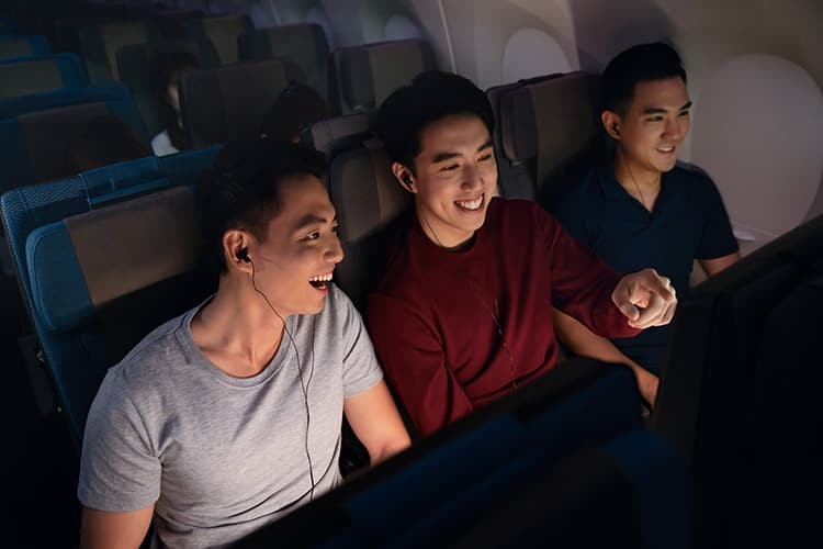 シンガポール航空独自のエンターテインメント・システム「クリスワールド」を搭載しており、映画・テレビ・音楽・ゲームなど1,900種類ものコンテンツが揃っています。映画は最新のハリウッド映画はもちろん、日本の作品も豊富にご用意。またエコノミークラスご利用のお客様でも「クリスフライヤー会員」になることで、無制限の無料機内Wi-Fiがご利用可能になるので、ご自身の端末でお気に入りの動画等もお楽しみいただけます。