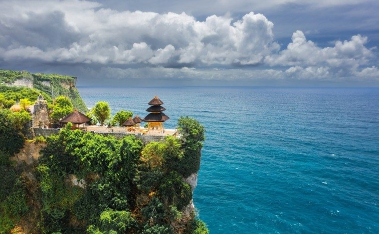 ウルワツ寺院見学 断崖絶壁に建つ美しい寺院で、インド洋の絶景を楽しみます。