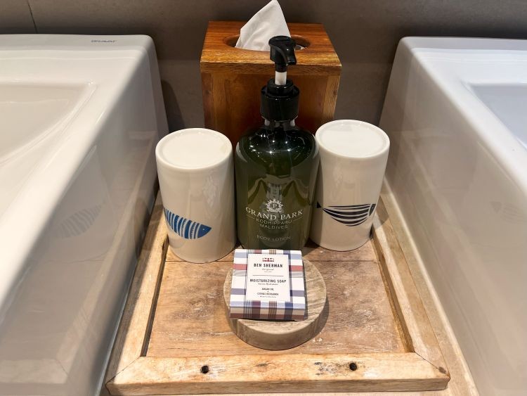 バスタオルの他、シュノーケル後にそのまま使えるビーチタオルも完備。アメニティは、シャンプー・コンディショナー・ボディソープ・ハンドソープ・歯ブラシ・カミソリ・シャワーキャップ等が置いてあります。