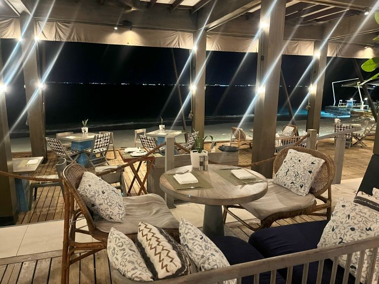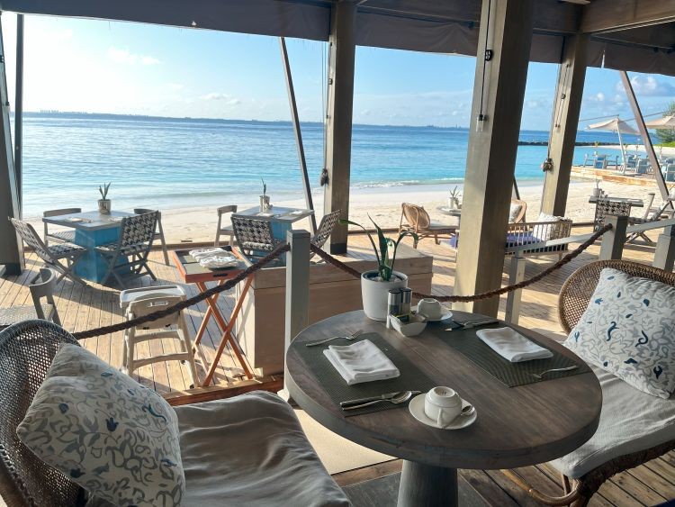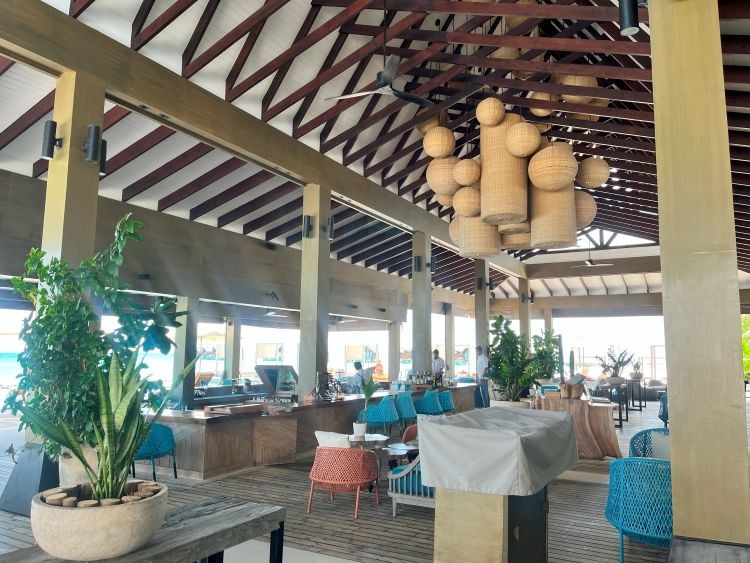 ライブクッキングステーションを備えた国際色豊かなビュッフェをお楽しみいただけます。朝・昼・夜の3食で利用可能なレストランで、波打ち際で海を感じながら食事ができました。首都のマレから近いリゾートのため、夜はマレの明かりが見えることが少し気になりました。