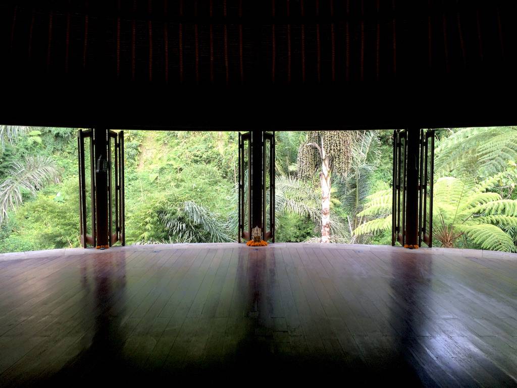 滞在2日目、7時半から始まる90分のヨガから1日をスタートしました。この日は、先生1人と生徒3人でのレッスン。7年続けているヨガですが、自然と一体になれる空間でのヨガは格別の体験でした。