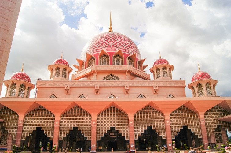 クアラルンプールから南に約25キロのプトラジャヤにある、ピンク色の外壁が美しいプトラモスクは、フォトジェニックな観光スポットとして若い世代に人気です。人工湖に面して建つモスクは、水面に映る姿も美しく、まるで絵画のような景観を作り出します。