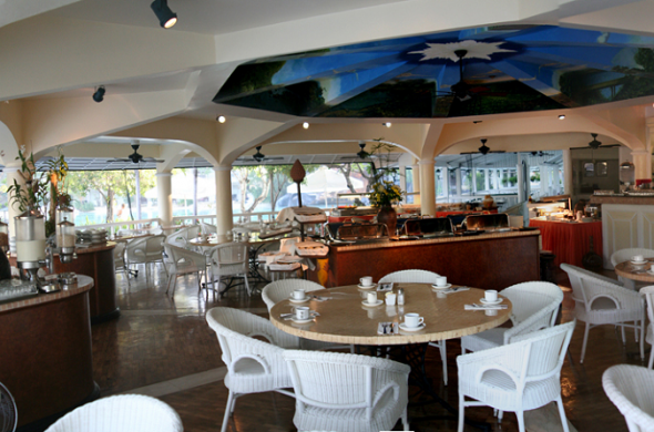 巨大なラグーンプールに囲まれた「キリマンジャロカフェ」は、オープンな空間で世界中の料理や地元フィリピンの人気メニュー、お子様向けメニュー、曜日ごとに異なるテーマの料理を堪能できます。