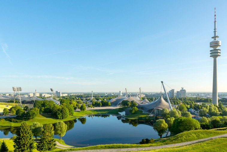 1972年のミュンヘンオリンピックの会場として建設されたオリンピア公園は、現在も多目的イベント会場として活用されています。特徴的な テント屋根の建築物は、建築史上の傑作としても評価が高く、展望台からはミュンヘン市街とアルプス山脈の絶景を望むことができます。