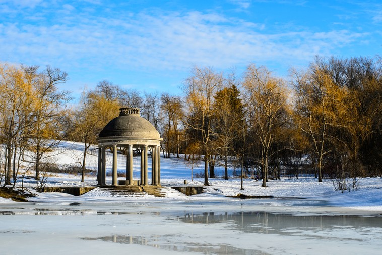冬季は雪化粧した景色が特に美しく、写真撮影スポットとしても人気です。また、公園内には湖もあり、冬季には氷上スケートを楽しむ地元の人々の姿も見ることができます。
