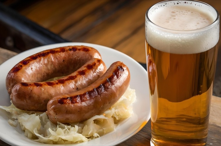 フランクフルト発祥のソーセージで、細くて上品な味わいが特徴です。マスタードとザワークラウトと一緒に提供され、ドイツビールとの相性は抜群です。