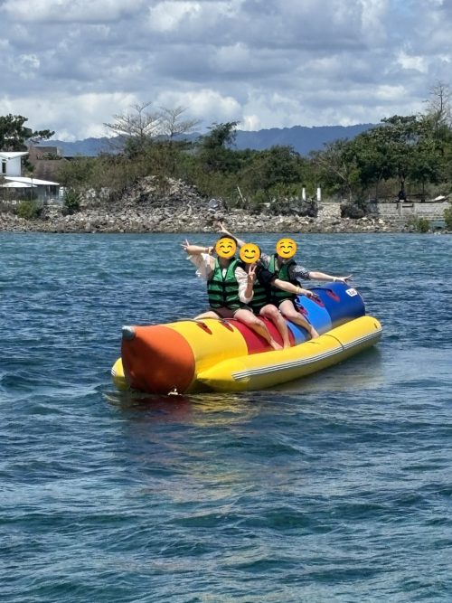 最終日はまず、特典のバナナボートを体験しました。予定では15分だけですが体感では30分くらい乗っている気分で、絶叫系なのでジンベイザメよりも楽しかったほど!気に入りました!