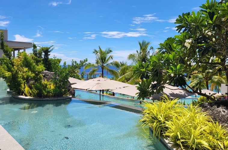 11.4ヘクタールの広大な敷地を誇るマクタン島屈指の大型リゾートです。最大の特徴は、リゾート中央にある巨大な海水ラグーンプール。滝やウォータースライダー、霧の出る洞窟まで備えており、海に行かなくても十分に楽しめます。
