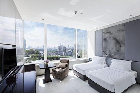 高さは61階という超高層!ホテルの50階から上はエグゼクティブフロアとなっており、高級レストランや専用ラウンジなどが設けられています。朝食ビュッフェやラウンジで午前中の時間帯からお酒が飲み放題!というバンコクでも珍しいサービスを提供しています。