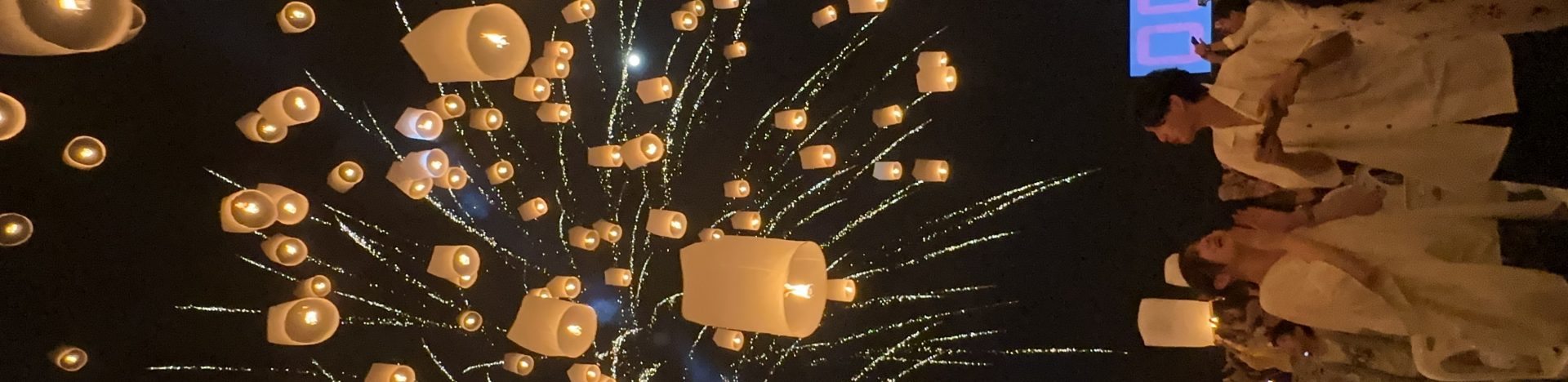 そして旅のメインイベント、20時にコムローイを一斉に打ち上げ!それはそれはとても美しい景色で、会場全体が幸せな空気に溢れているのを感じました。中々みられる景色ではないので、訪れてよかったと心から思います!4回打ち上がるのですが、内2回打ち上げしました。