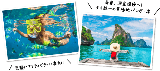 せっかくプーケットへ行くならオプショナルツアーに参加してココにしかない絶景へ!プーケット周辺のピピ島、コーラル島、パンガー湾では息をのむ美しい海に出会えます。当社のパッケージツアー/旅行をお申し込みいただいたお客様“限定” のお買い得オプショナルツアーもご用意。ぜひご利用ください!