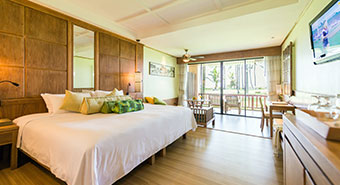 - バルコニーまたはデイレストエリアから、アンダマン海を眺められるお部屋「ジュニア スイート」。大人2名と12歳未満の子供1名で利用できます。