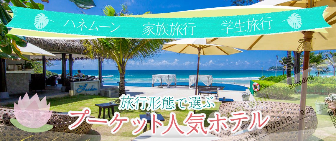 美しいビーチと賑やかな街で、様々な世代に指示を得ている人気のリゾート地「プーケット」。あらゆる旅行者を満足させるバリエーション豊富なホテルも魅力です!ハネムーナーから、ご家族、学生さんまで、目的や予算にぴったりのおすすめのホテルをご紹介します!