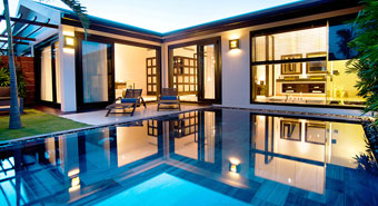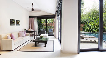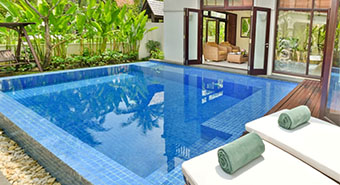 - 大きなプールが付き南国らしい雰囲気の「2ベッドルーム プールヴィラ」。大人+子供で4~6名まで宿泊可能で、バスルームは2つあるのも嬉しいポイント!