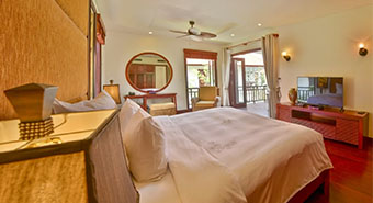ベトナムらしい暖かみのあるデザインが特徴の老舗ホテル。全客室2階建てのヴィラタイプでプライベートプール付き。客室は、302m²~と広々した作り。一番大きなヴィラはなんと900㎡ございます。大きなバスタブが付いているのも嬉しいポイント。2ベットルームは最大大人6名、一番大きい4ベッドルームは12名宿泊できます。ファミリーや4名以上のご利用におすすめです。