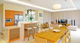 ザ オーシャン ヴィラズは、ノンヌオックビーチが目の前にある、ロケーション抜群のリゾートホテルです。大人2名+子供2名からご利用できる「2ベッドルームプールヴィラ」から、最大10名までご利用できる「5 ベッドルーム ビーチフロント ヴィラ」まで、ファミリーやグループ滞在向けになっています。ヴィラタイプのお部屋はすべて2階建てとなっております。プライベートプールに、リビングルーム、キッチン、また各ベッドルームには専用のバスルームが付いています!充実した設備でまるで別荘のよう。また、ホテル敷地には広々とした2つの大型の共用プールもあります。プールサイドにはプールバーもあるので、プライベートプールより広々使いたい方はこちらもおすすめです。