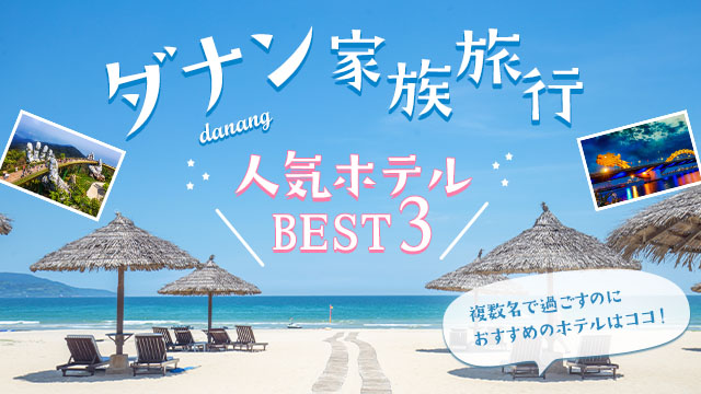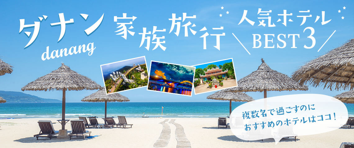 ダナンの家族旅行にぴったりな3名1室や4名1室で泊まれる人気ホテルをご紹介します!快適で広いホテルに泊まって、みんなでわいわいと楽しい時間を過ごしましょう!ダナンはラグジュアリーなリゾートホテルにリーズナブルに宿泊できることが魅力です。今注目を集めているダナンで思い出に残る最高のひと時を、ご家族でお過ごしください!