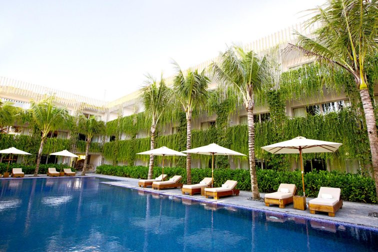 ダナンを代表する人気ホテル「ナマンリトリート」 現代的なデザインに籐や竹、ウッド、石などの自然を感じさせる素材とベトナムの伝統を取り入れたエコリゾートです。