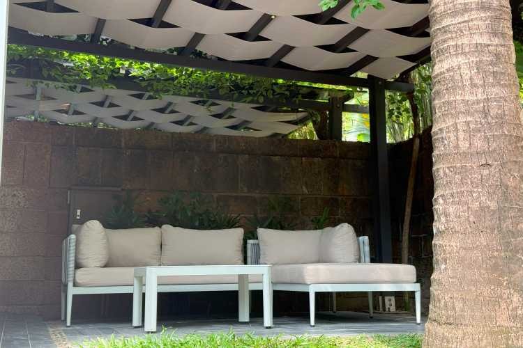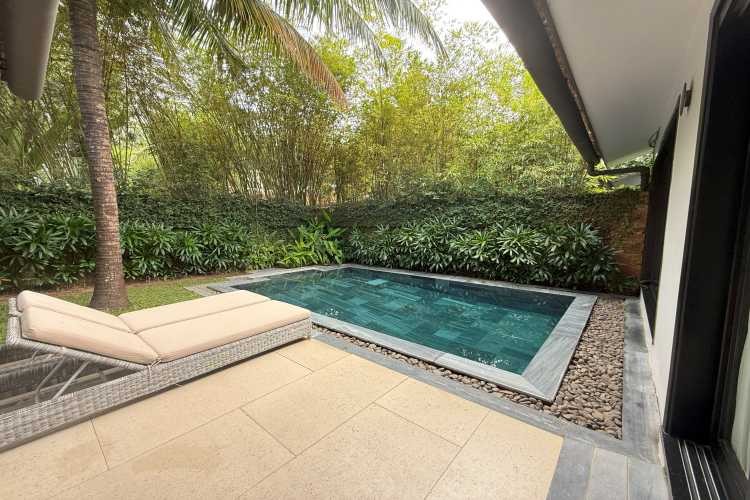 そしてTIAウェルネスといえばの、全室プライベートプール付き!写真で見るより広々していましたよ。プールの横には、プールチェアやテーブル、ソファもあるためお外でもゆったりお過ごしいただけます。