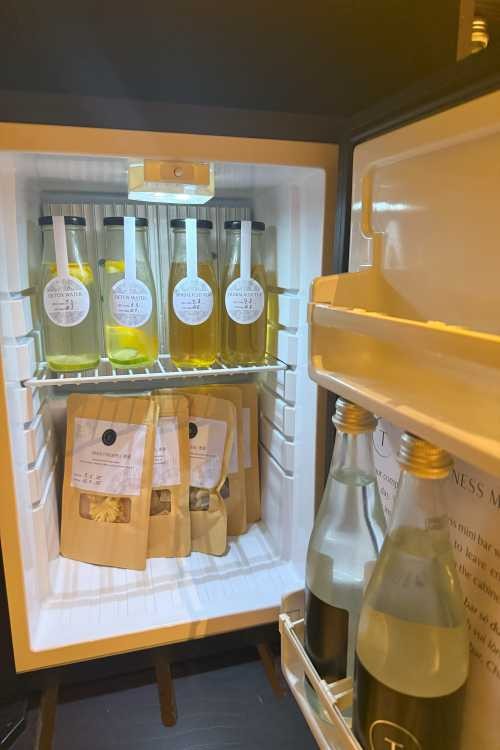 もう一つの特徴として、ミニバーも無料でご利用いただけます!ハーブティーやデトックスウォーター、ドライフルーツやオーガニックのスナックまで。どれも美味しく頂きました。