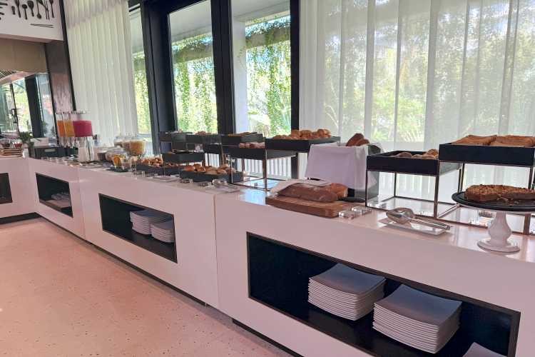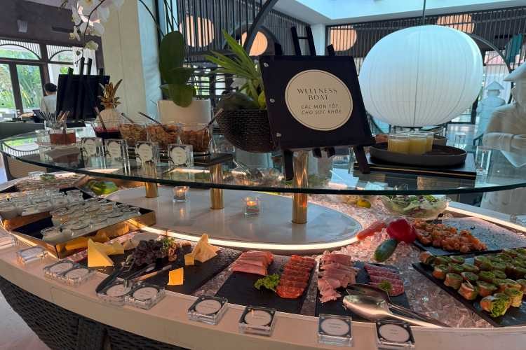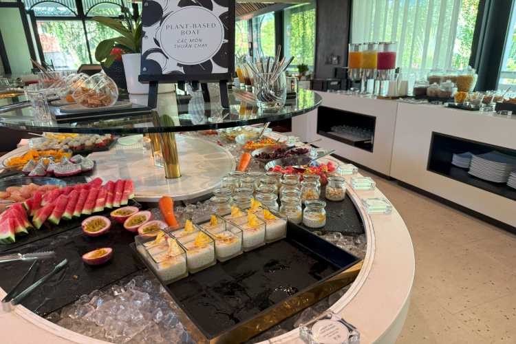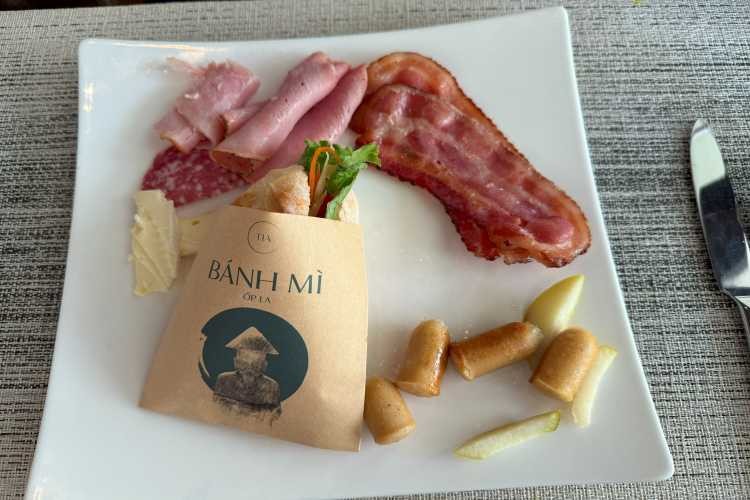 ビュッフェエリアには、新鮮な野菜やフルーツ、ハムやチーズ、種類豊富なパンに、小さなバインミーなどもありました!