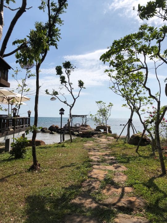 タクシーが通らない場所なので、来た道を歩いてみることにした。木々の香りに癒される静かな道を進んで行くと、秘密めいたリゾートホテル『Ong Lang Village』や新しげなオープンダイニングがひっそりオシャレに建っていた。今回予約が取れなかった人気の『Mango Bay Resort』も、確かこの近くだ。発見が楽しい散歩道だ。発見はまだまだ続く。