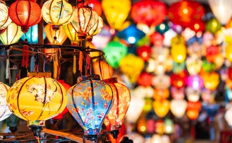 ホイアンの夜景 カラフルなランタンが川面に映る幻想的な風景は、インスタグラムでも人気の撮影スポットです。