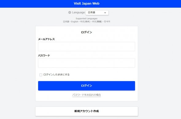 アカウントの作成はこちらから⇒「Visit Japan Web」