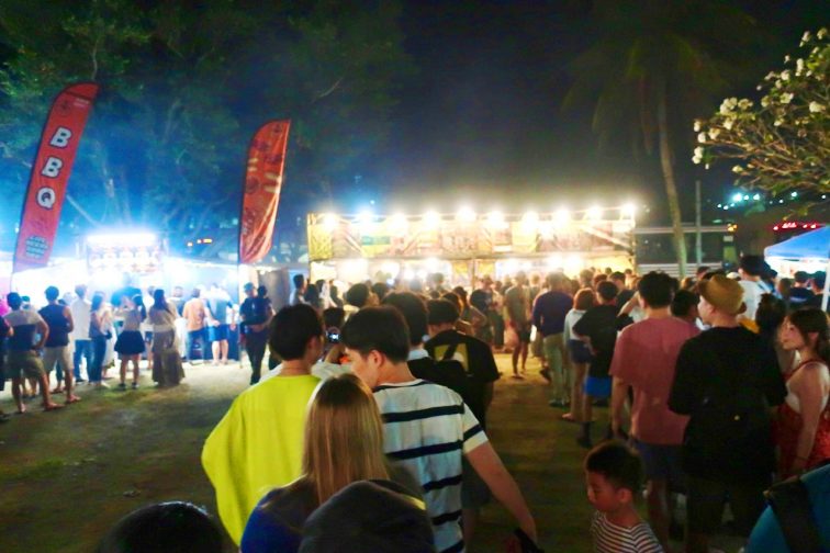 夜とはいえ、人々の熱気で会場は結構暑いです。クールダウンできるフルーティーなスムージートラックにも、長蛇の列ができています。マンゴーやパイナップルなどの定番フレーバーの他に、甘いメロンのような味がする「ハニーデュー」や「グァバ」など、日本では中々お目にかかれないフレーバーに挑戦してみるのも楽しいですよ!