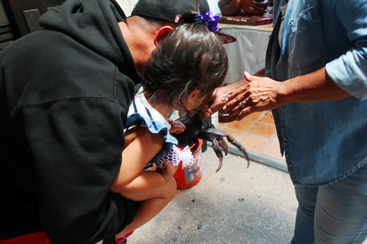 touching crabs! at the at the Chamorro Village Night Market