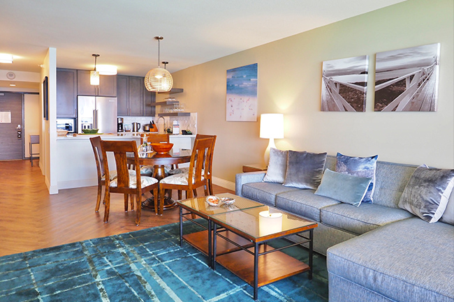コンドミニアムとは、客室にキッチンなどの生活するための設備が備えられた宿泊施設のことです。一般的に、寝室とは別にリビングがあるセパレートタイプが多く、キッチンの他に洗濯機なども完備されている宿泊施設もあります。料理や洗濯などの生活に必要な設備が揃っているので、中長期ステイやグループ、ファミリーでの旅行に向いています。