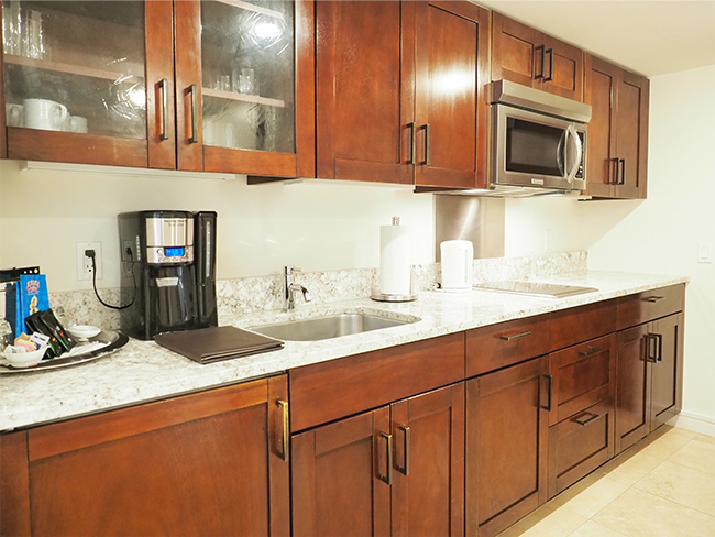 コンドミニアムは寝室とは別にリビングがあります。高さのあるベッドは座りづらいし大人数には狭くてイマイチくつろげない、誰かが寝た後は静かにするよう気を遣うといったことも、広いリビングがあればソファによりかかってみんなでくつろいだり、子どもや同行者が寝た後でも、寝室のドアを閉めて夫婦でお酒を飲んだりと、自宅のように過ごせます。