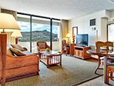 窓からハワイの景色が見えるリビング -