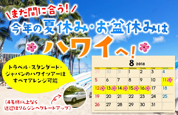 ※上記価格に、ハワイ州税4.166%が加算されます。