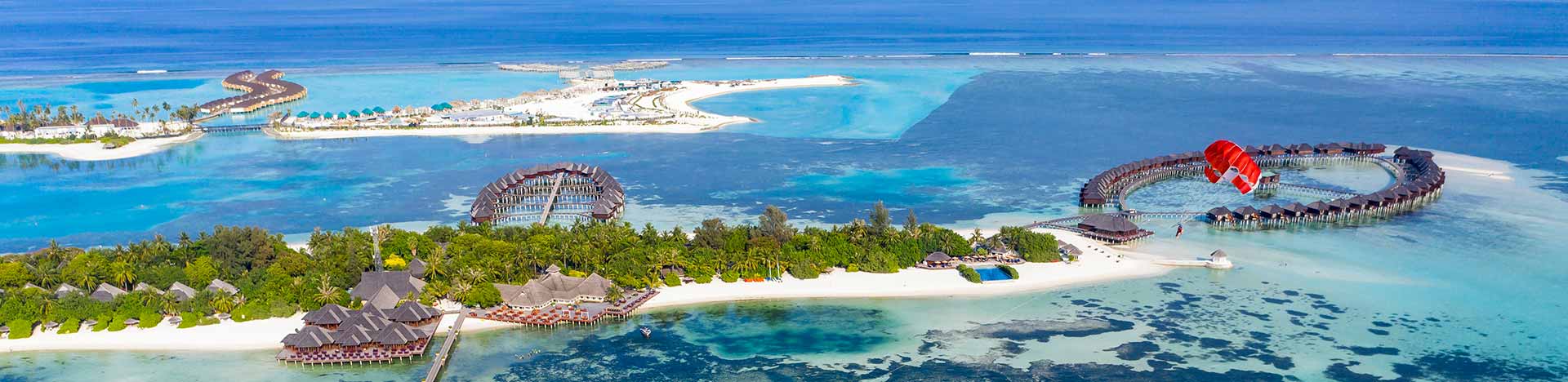 マーレ空港からスピードボートを利用し、約45分の距離に位置するリゾートです。広い遠浅のラグーンに囲まれ、干渉時には真っ白なサンドバンク(砂州)が浮かび、幻想的な雰囲気になるのも魅力の一つです。 美しいラグーンを利用して、ダイビング、ウィンドサーフィンなどのマリンスポーツを存分にお楽しみいただけます。 リゾート内にはレストランが7つとバーが4つあり、世界各国の幅広い料理を楽しみいただけます。そのほか、スパやダイビングショップ、ジムも完備。