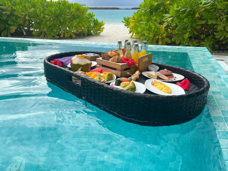 全室プール付きのサン シヤム イル ヴェリでぜひ体験してほしいのがフローティングブレックファスト!注文すると希望の時間にスタッフがお部屋まで料理を運んで、プールに浮かべてくれます。メニューは選択可能なので、リゾートご到着後にスタッフにご相談ください。