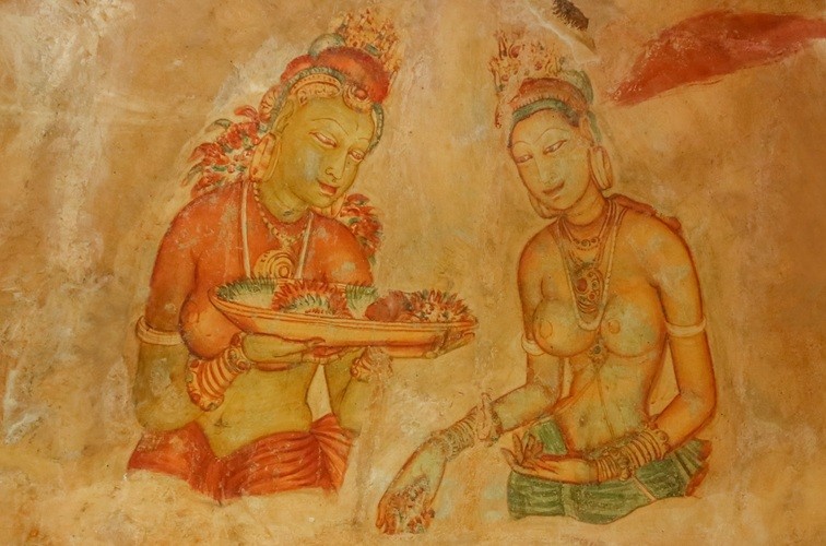 シギリヤロックの見どころのひとつである「シギリヤレディ」。こちらは、シギリヤロックの中腹に残るフレスコ画で、何のために誰が描いたのか、そしてこの女性は誰なのか、多くの謎に包まれています。かつては500人の女性が描かれていましたが、現在は18人のみ見ることができます。1500年ほど前の壁画がこんなにも色鮮やかに残っているとは驚きです!なお、壁画の保護のため2015年12月30日より撮影は全面的に禁止されています。是非ご自身の目にじっくりと焼き付けてくださいね。