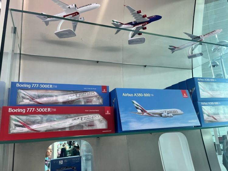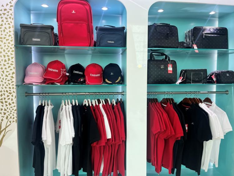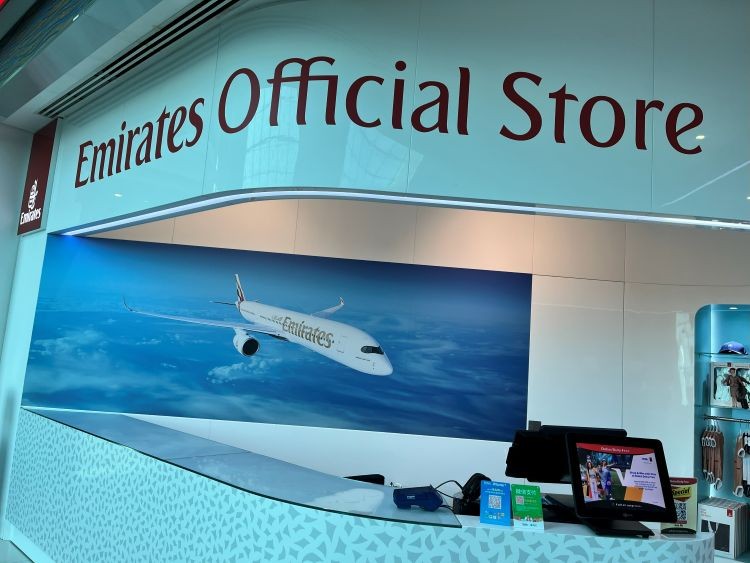 A24ゲート付近にエミレーツ航空のオフィシャルショップがありました。機体の模型やTシャツ、帽子、リュック、スーツケース、ポーチなど、さまざまなグッズが販売されています。ショップの場所は変更となる場合もありますので、訪れる際にはエミレーツ空港のマップをぜひ確認してみてください。