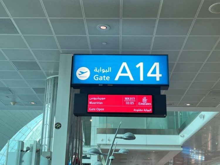 Aゲートがあるエリアに到着後はまた手荷物検査がありました。エリアの移動がある場合は、都度手荷物検査が必要なようです。移動完了まで約1時間かかりました。ドバイ空港は大きいですね!搭乗ゲートの場所だけしっかり確認しておき、ここから空港探検へ向かいます!