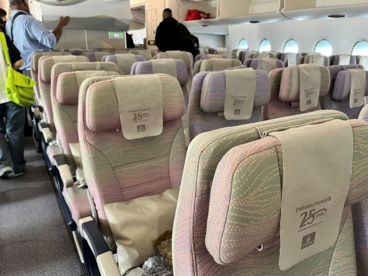 他にも飲食店やお土産ショップが多数ありますので、乗り継ぎ時間も楽しく過ごすことができました。9:00に搭乗ゲートがオープンし、定刻通りに離陸。ドバイ~モーリシャス間は3-4-3の配列でなんと2階建ての機材!かなりの収容人数ですが、こちらも搭乗率は100%でした。恐るべしリゾート地・モーリシャス!ちなみに、2階は機材によりエコノミークラスの座席はあったり無かったりするそうです。