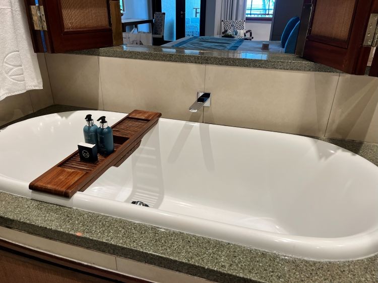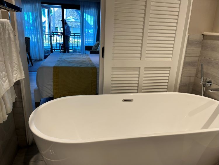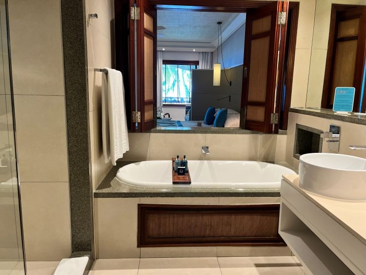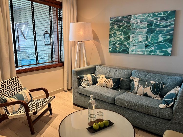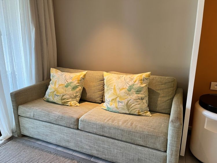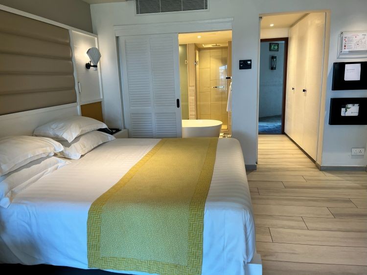 45平米のお部屋には、大人2名+12歳以下のお子さま1名もしくは、大人3名でのご宿泊が可能です。プールに面した客室(37室)やビーチフロントの客室(67室)のご用意がございます。基本的なつくりはジュニアスイートで、お部屋の広さは23平米違いますが、そこまで狭さを感じませんでした!じゅうぶんおくつろぎいただけるお部屋です。