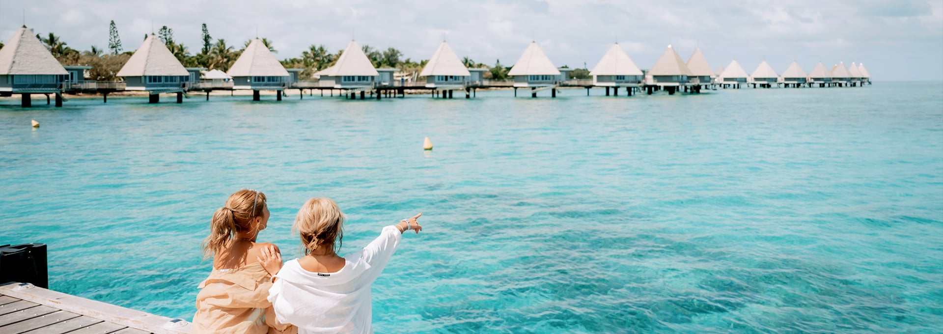 ヌメアからボートで約20分の場所にあるメトル島で、一度は泊まってみたい憧れの「水上バンガロー」に滞在するプランです!