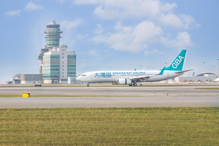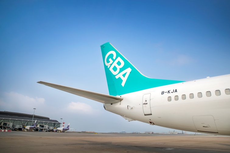 機体や客室乗務員のユニフォームがエメラルドグリーンを基調とした、明るい印象の「グレーターベイエアラインズ」。成田/関空~香港間を結びます。