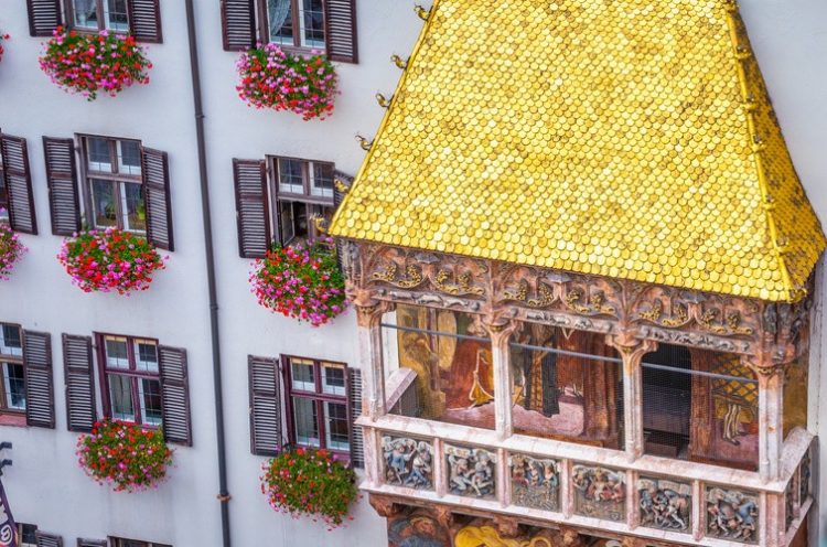 時間に余裕があれば、インスブルックも訪れたい都市です。2度の冬季オリンピックが開催されたこの町は、山々に囲まれた美しい景観が魅力です。黄金の小屋根と呼ばれる旧市街のランドマークは、2,657枚の金箔を施した銅板で覆われており、陽光を受けて輝く姿は圧巻です。