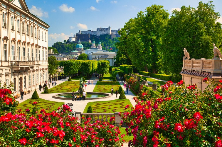 ザルツブルクでは、ホーエンザルツブルク城からの旧市街俯瞰、ミラベル宮殿の庭園(映画「サウンド・オブ・ミュージック」のロケ地)、マカルト橋からのザルツァッハ川の眺めがおすすめです。