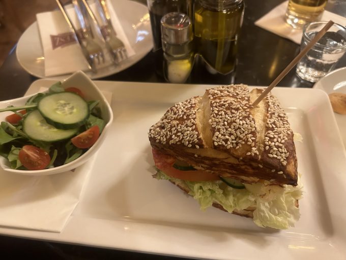 お昼からオペラ座界隈まで街散策。素敵なカフェを見つけたのでランチにふらっと入ってみると、歴史のあるカフェ「Művész Kávéház」でした。こちらでいただいたサンドウィッチと野菜サラダがおいしかったです。