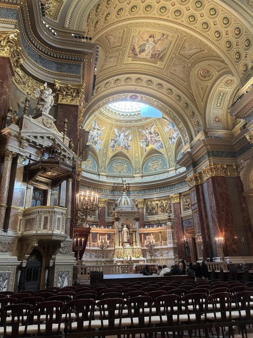 聖イシュトヴァーン大聖堂、フランツリストの家を観光して、ランチで人気店の「メンザ」へ。ハンガリー料理のグヤーシュをいただき、一緒に頼んだビールも美味しかったです。 聖イシュトヴァーン大聖堂は、外観と中の印象が全く違うほど、中はどこを見ても豪華な装飾でその煌びやかさと広さに圧倒されました。